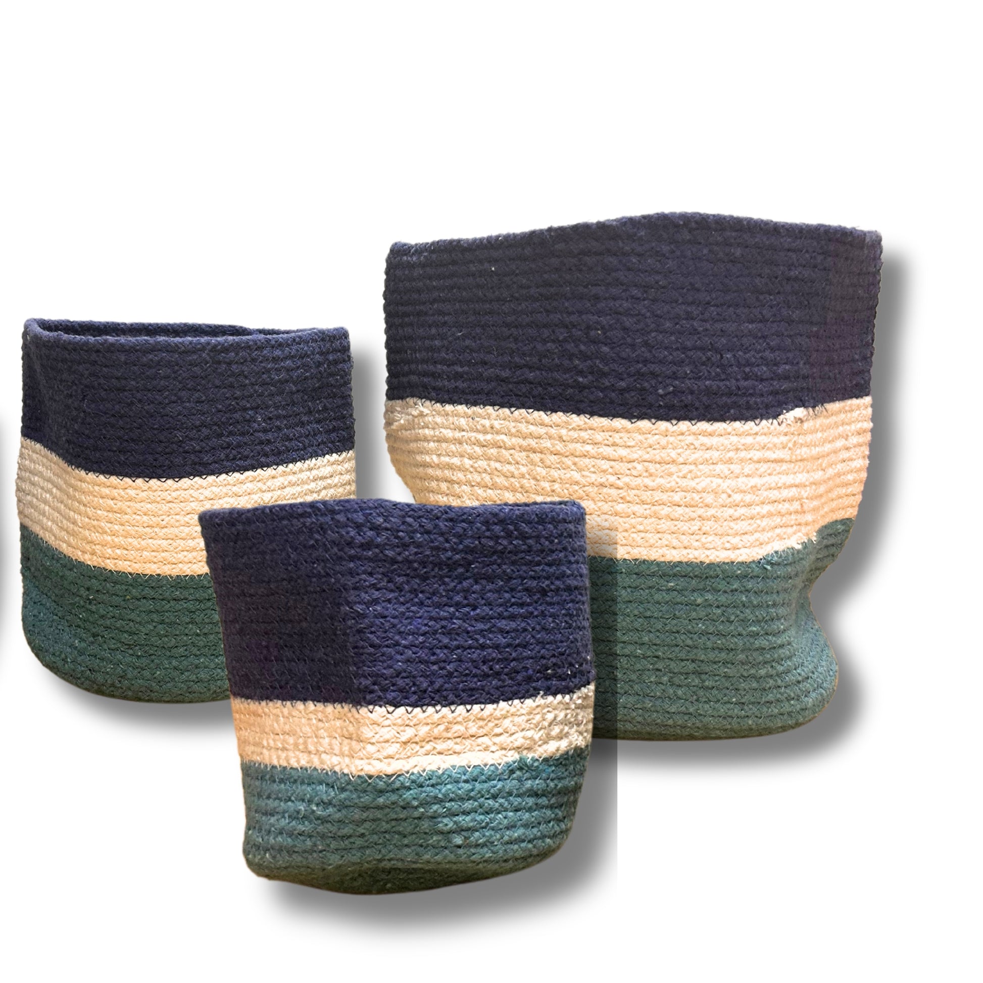 🧺 Set de 3 Cestas de Yute con Mal de Ojo – 15 cm / 20 cm / 25 cm