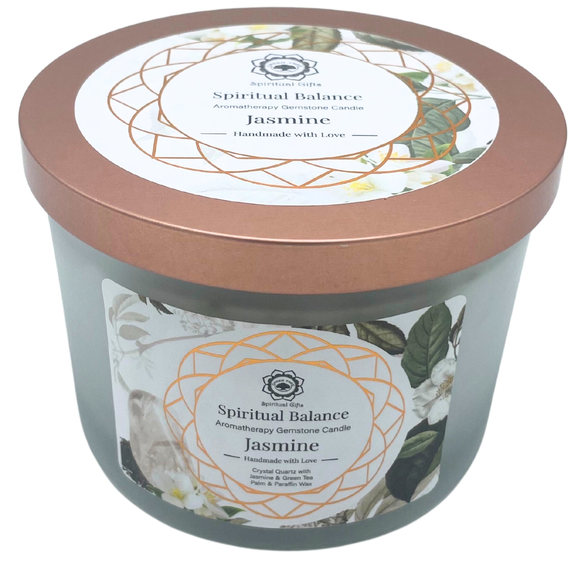 Vela de Jasmín y Piedra Preciosa Quarzo Cristalino - Equilíbrio Espiritual